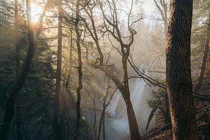 Burney Falls at sunrise from the Rainbow Loop Trail.